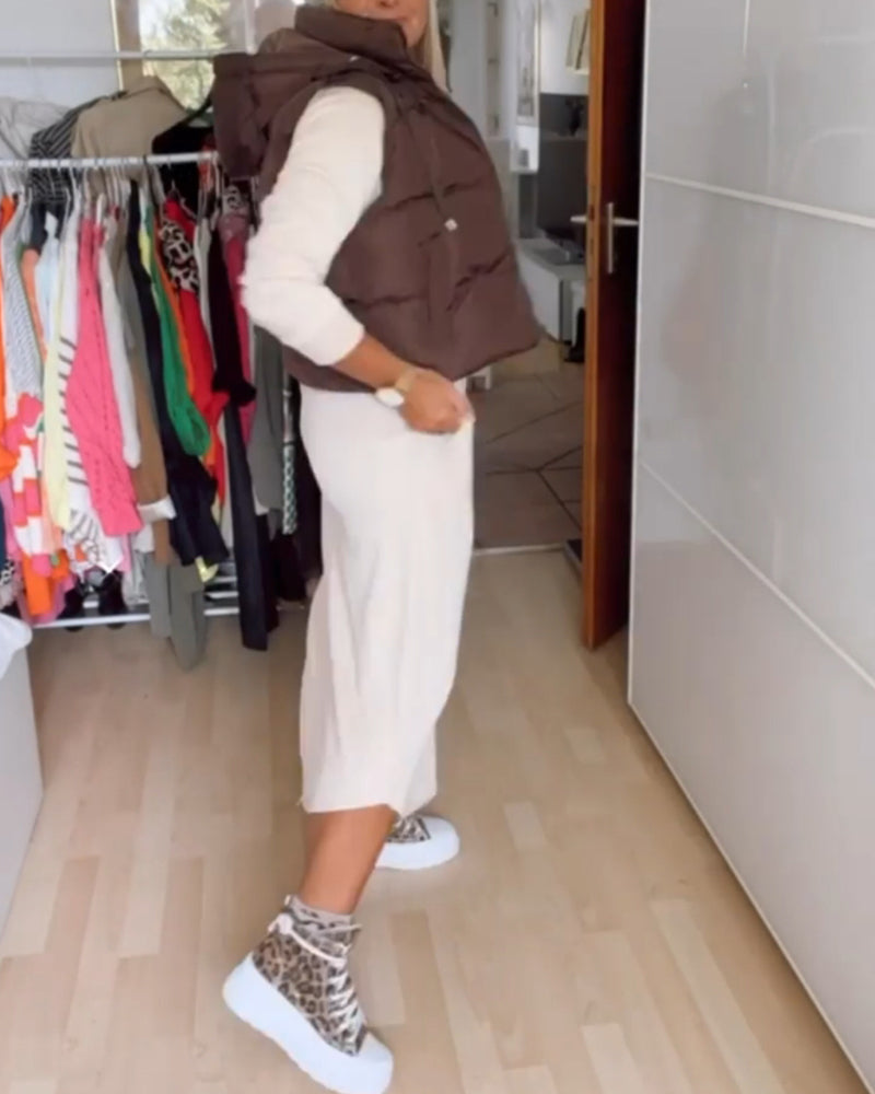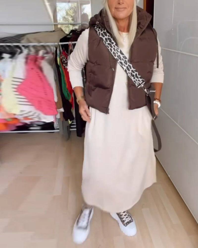 Manteau gilet à capuche de couleur unie