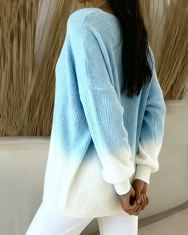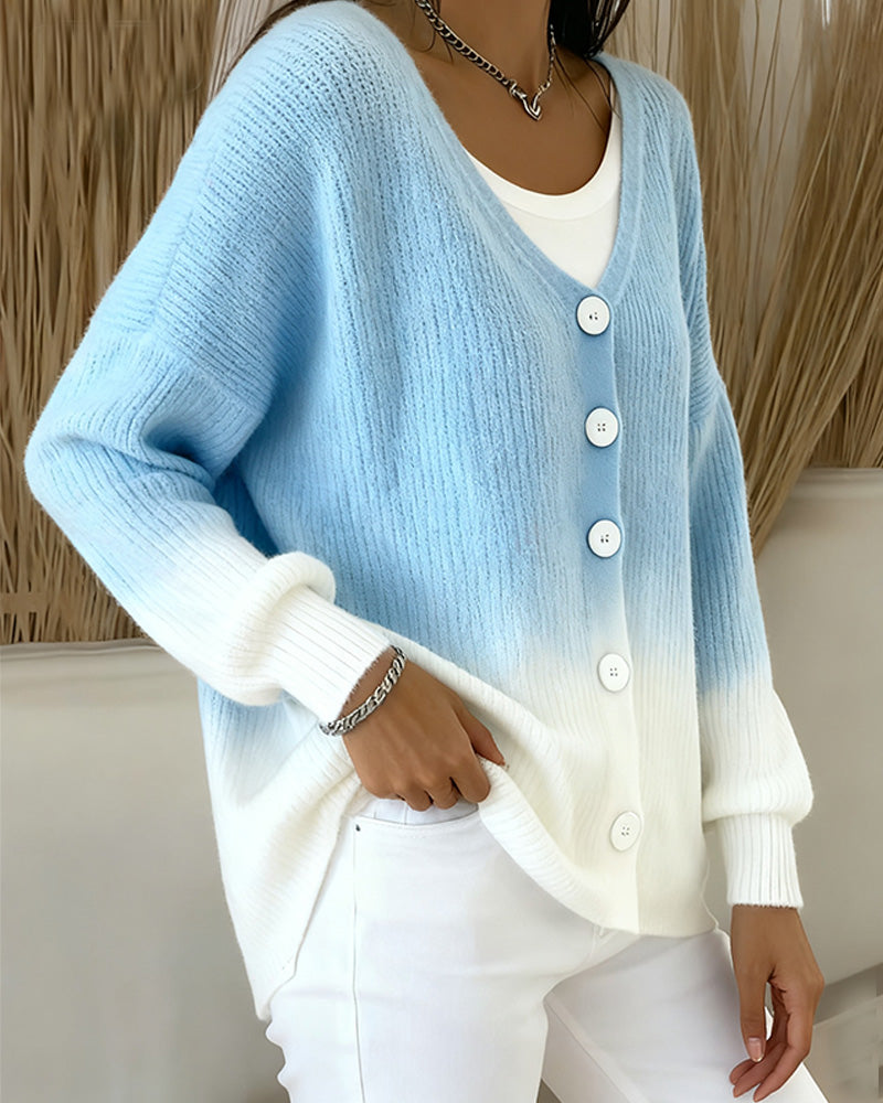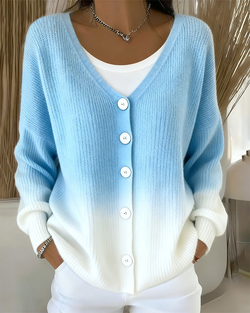 Cardigan À Col En V Manches Longues Dégradé