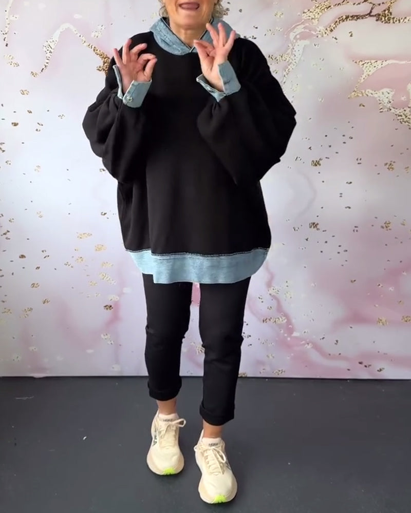 Sweat à capuche décontracté à manches lanternes de couleur contrastée