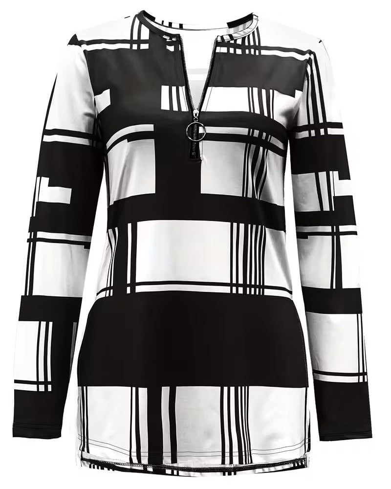 T-Shirt À Manches Longues Avec Fermeture Éclair Et Fente À L'ourlet